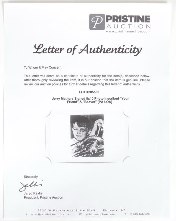 Jerry Mathers Signed 8" x 10" Photo Leave It To BeaverIncludes Pristine Auction Letter of Authenticity.