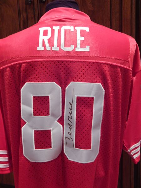 You are bidding on a San Francisco 49ers player # 80 jersey signed by Jerry Rice. This item comes with a Certificate of Authenticity guaranteed for the life of the piece.