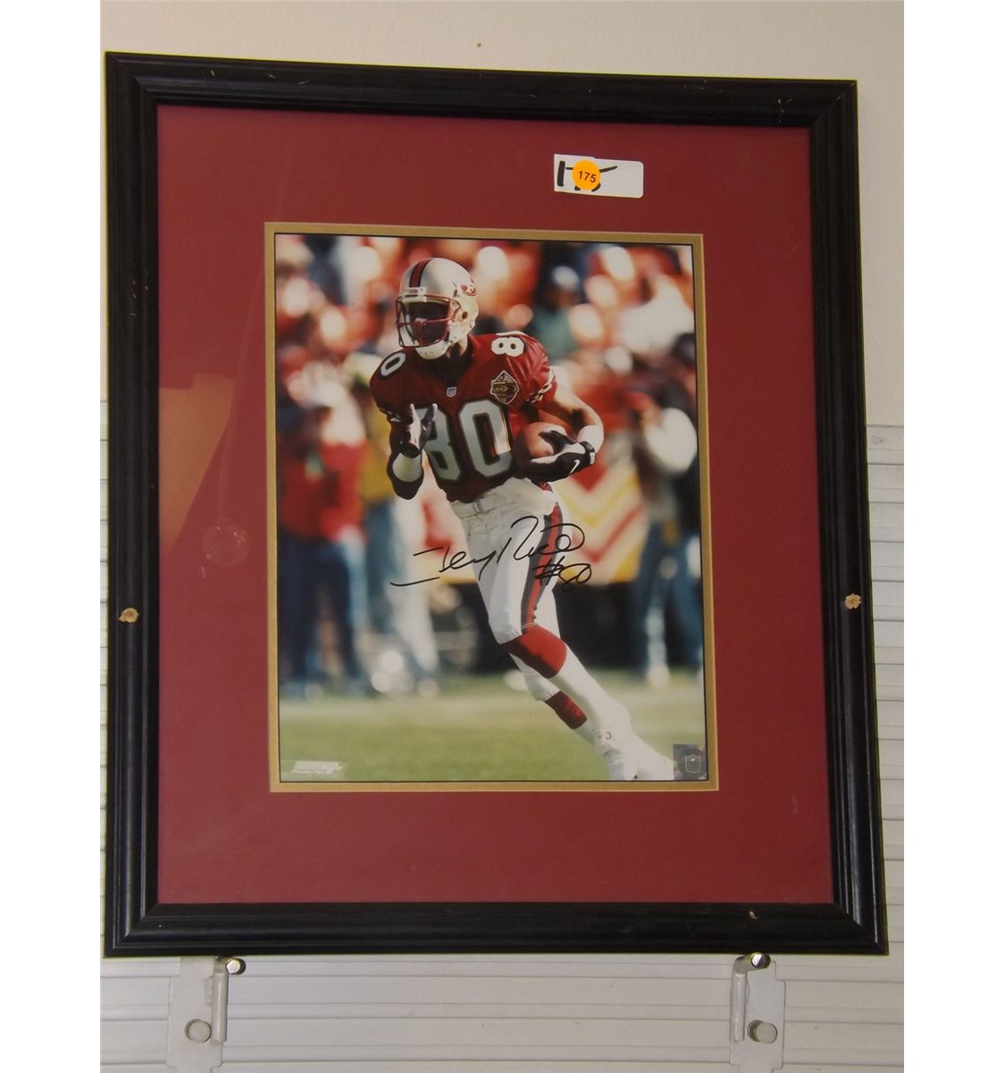 Jerry Rice Autographed Photo. 8x10 Framed Photo. Appraised or estimated retail value $600. COA by J. DiMaggio Co. & Christopher Morales. All Sales Final. Please see terms and conditions of auction.