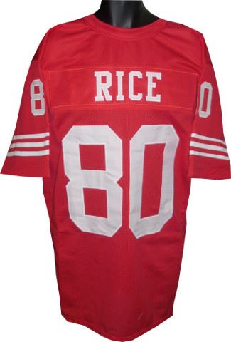 Jerry Rice is widely regarded as the greatest wide receiver ever and one of the greatest players in National Football League history. The all-time leader in every major statistical category for wide receivers and the all-time NFL leader in touchdowns scored with 208, Rice was selected to the Pro Bowl 13 times (1986–1996, 1998, 2002) and named All-Pro 11 times in his 20 NFL seasons. He won three Super Bowl rings playing for the San Francisco 49ers.This is a Jerry Rice San Francisco 49ers unsigned Red TB unlicensed custom-prostyle jersey with twill stitched nameplate and numbers. perfect for autograph or to wear! Size XL
