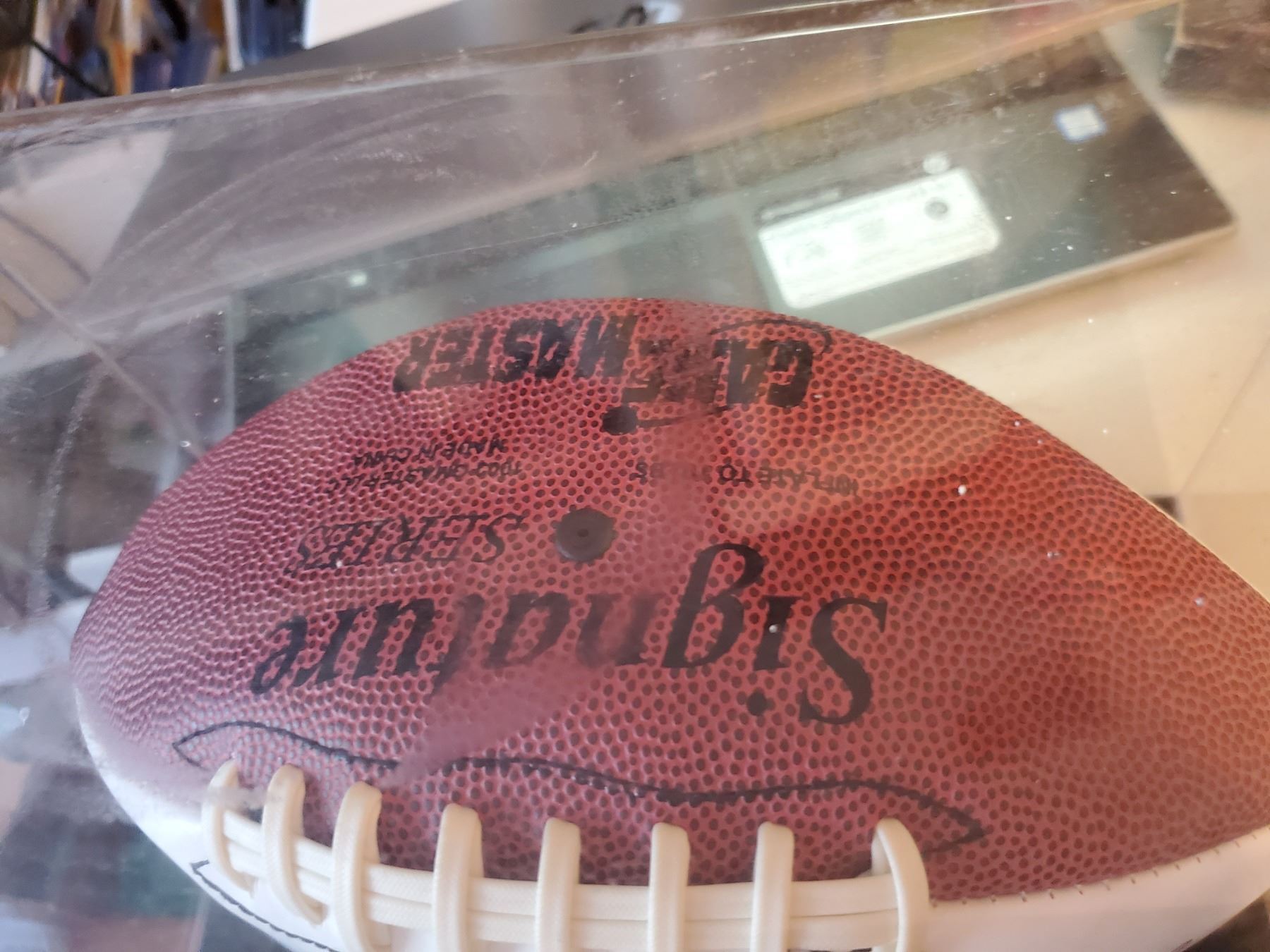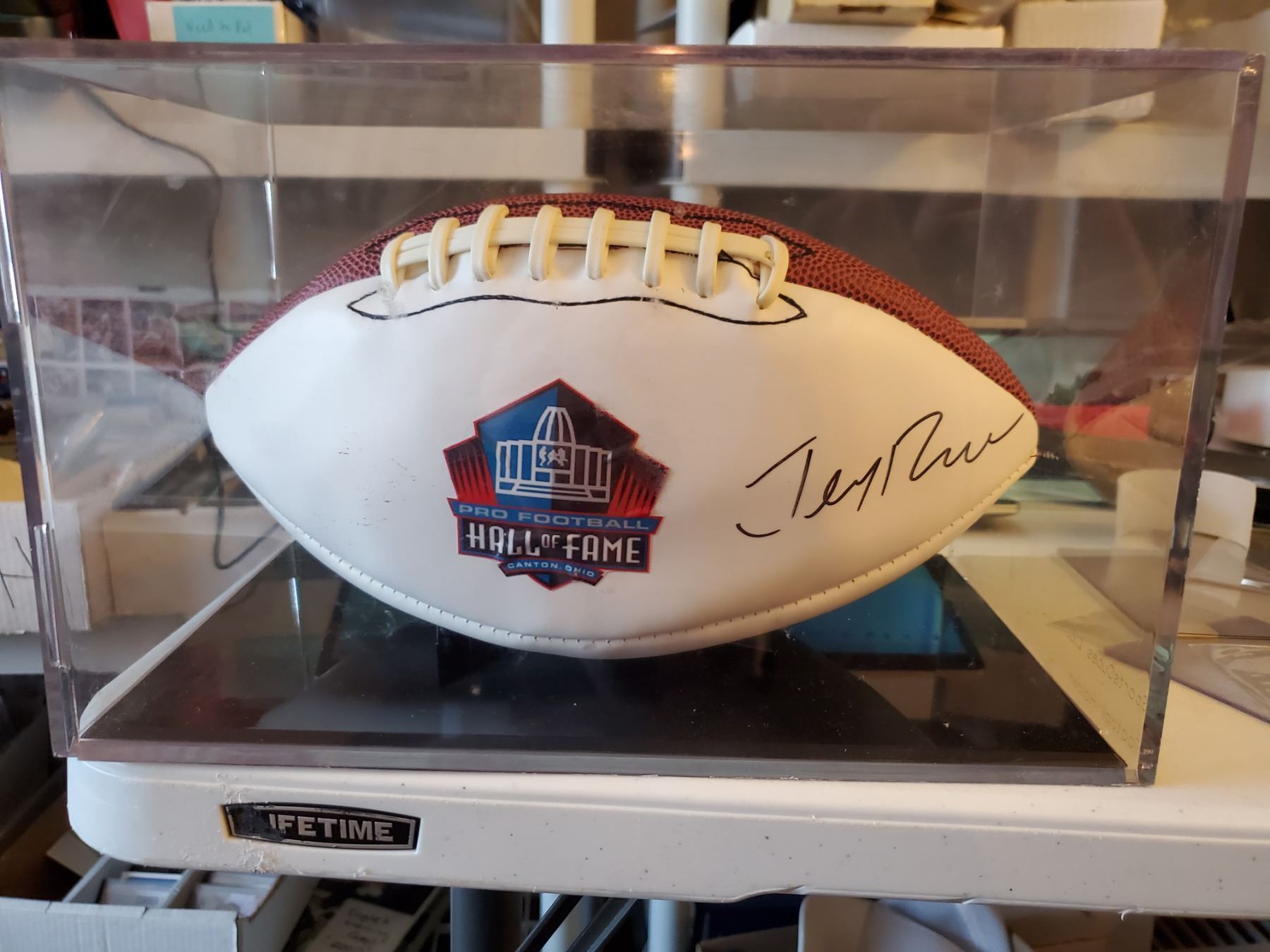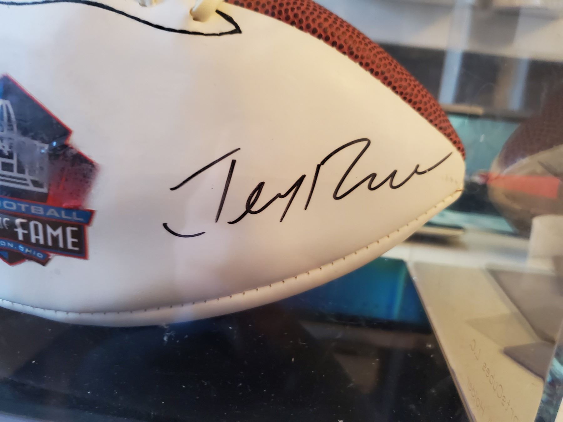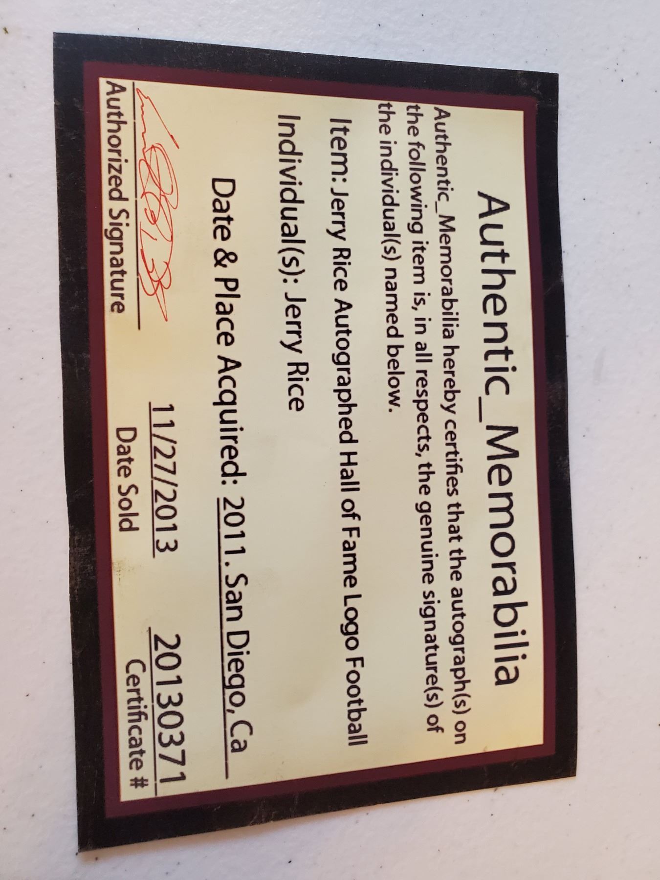 Jerry Rice Signed Fall of Fame Football With COA and Pictre of ball being signed