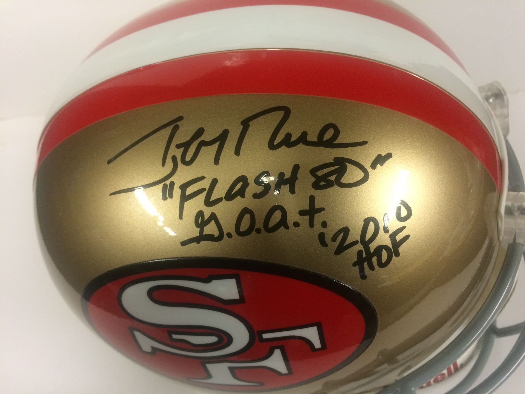 Helmet Has Been Hand-Signed And Inscribed In Black Felt-Tip Pen By Jerry Rice. Authentication: Jr Hologram