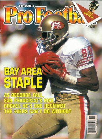 This is an Athlon Sports 1991 Pro Football Magazine with San Francisco 49ers Wide Receiver Jerry Rice on the cover. This Preview has team analysis, predictions, lineups, rosters and more for the 1991 Season