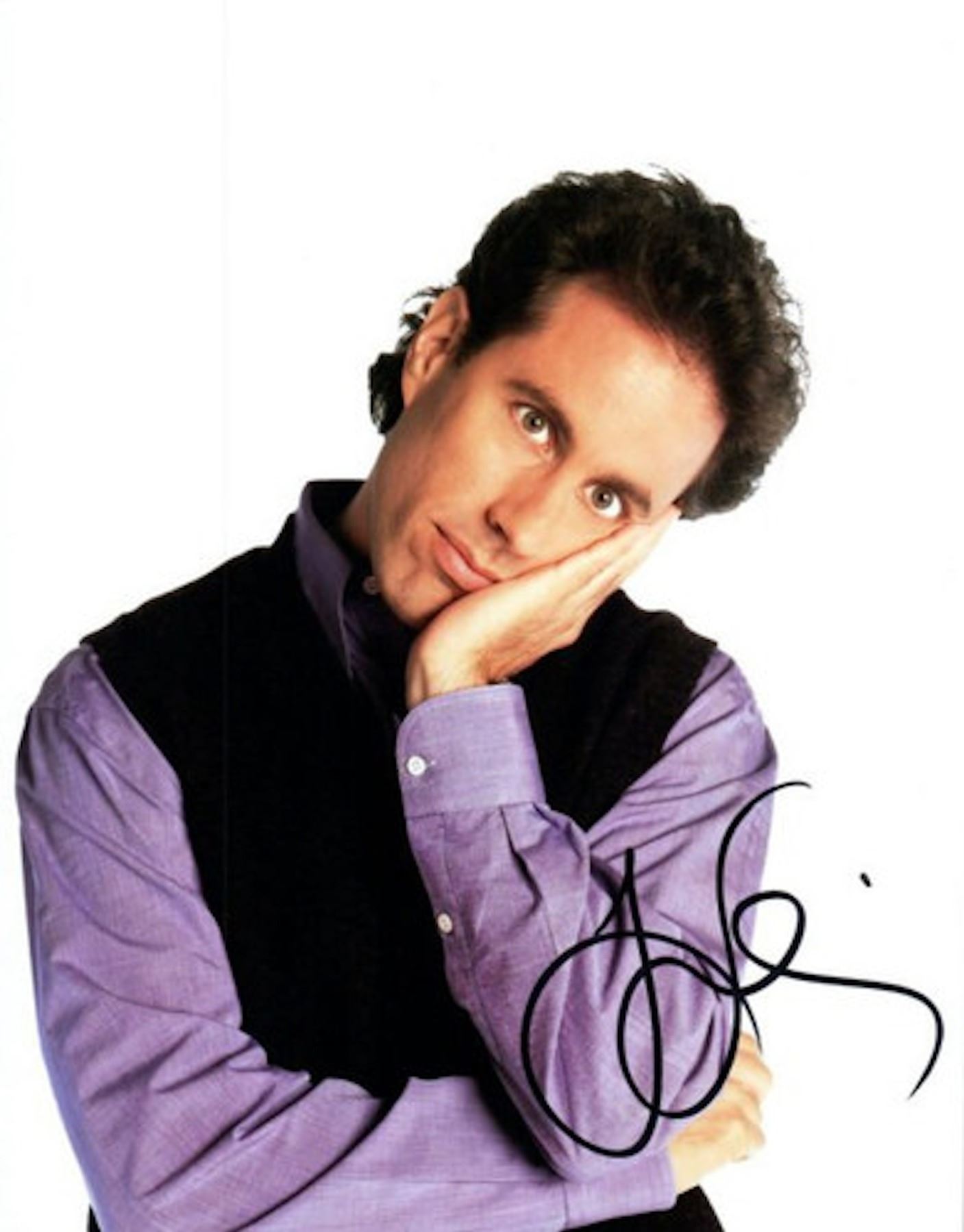 Jerry Seinfeld facsimile signed photo. 8x10 inches. This item is a reprint of an original autograph