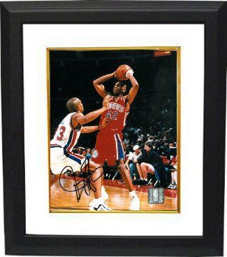 In his first season with the 76ers, Jerry Stackhouse led his team with a 19.2 points per game average, and was named to the NBA's All-Rookie team. In the 1996–97 season, the 76ers also drafted Allen Iverson. Combined, the two posted 44.2 points per game for the Sixers. Jerry Stackhouse has hand signed this Philadelphia 76ers 8x10 Photo. Certificate of Authenticity from Athlon Sports. Custom White Mat and Premium Black Framed as shown.