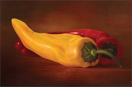 Jerry Venditti (b. 1942). 24" x 36". Oil on Canvas. "Hot Peppers". Pristine condition. (est $6,000-8,000)