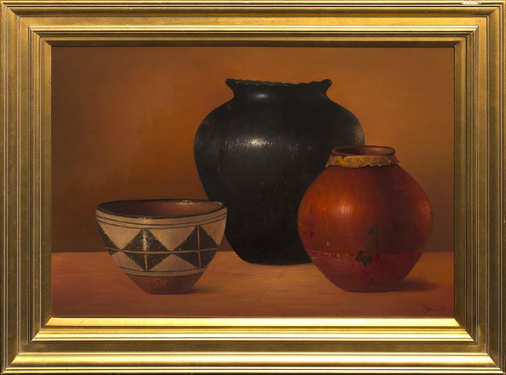 Jerry Venditti (1942 - ). San Juan Pots. 24" x 36" oil on canvas. Signed and dated '05 lower right.