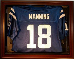 Mahogany Jersey case, cabinet style with removable frame. Easily hangs on any wall for beautiful display. An awesome way to display your full size football, basketball, baseball, hockey or any other jersey. note: jerseys sold separately!