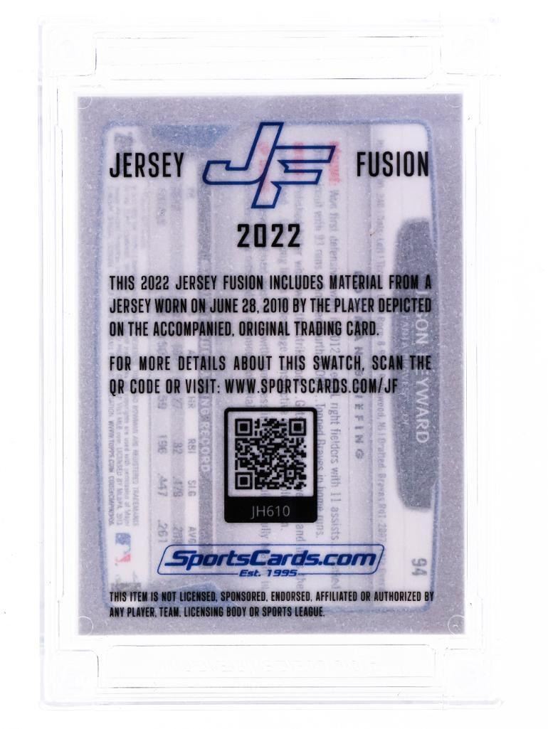 Jersey Fusion 2022 Piece of a Game Jersey Worn in the June 28,2010 Game by Jason Heyward + Card