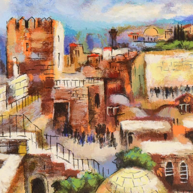 "Jerusalem" is a limited edition serigraph on paper, numbered and hand signed by Slava Brodinsky. Includes Certificate of Authenticity. Measures approx. 17.5" x 15" (border), 12.5" x 10" (image).