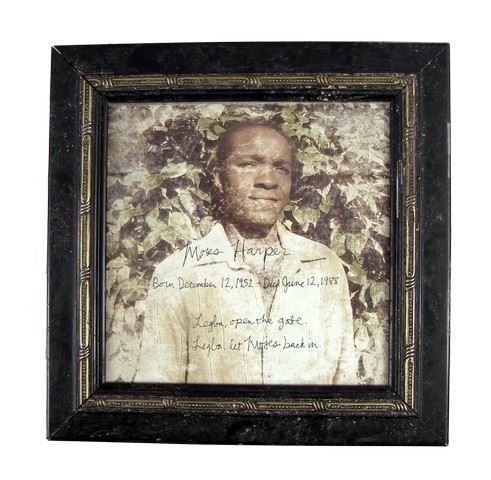 Moses Harper screen used, hero, framed vintage photograph with writing on the front. (approx. 9 1/2" x 9 1/2")