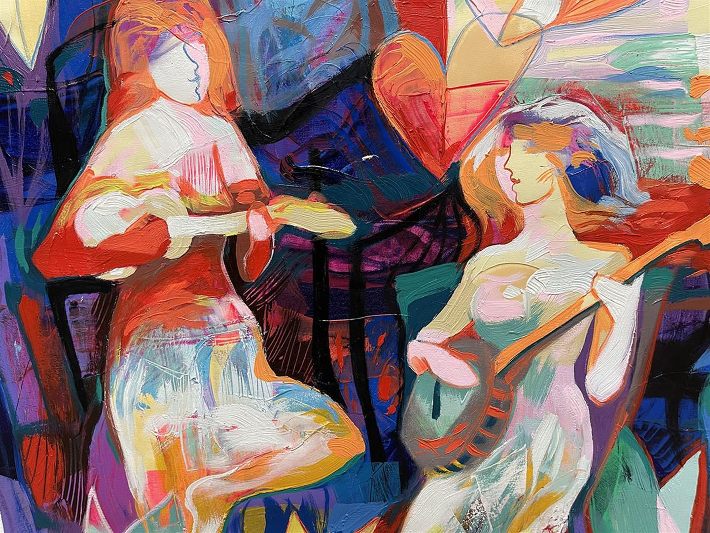 Amazing original oil on canvas. Hand signed by artists. Artwork comes with a certificate of authenticity. This artwork comes rolled. Size 28x58"