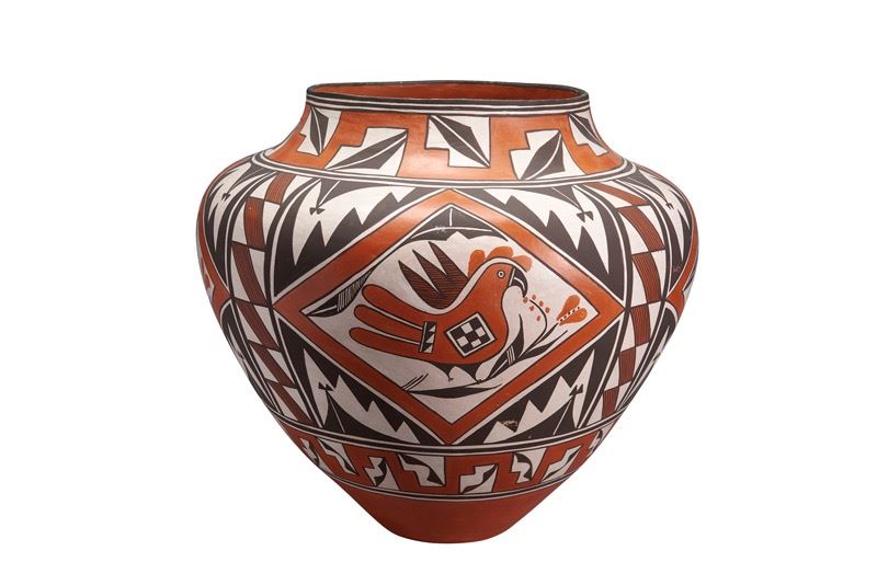 Title: Acoma: Large Polychrome Jar with Parrot Design