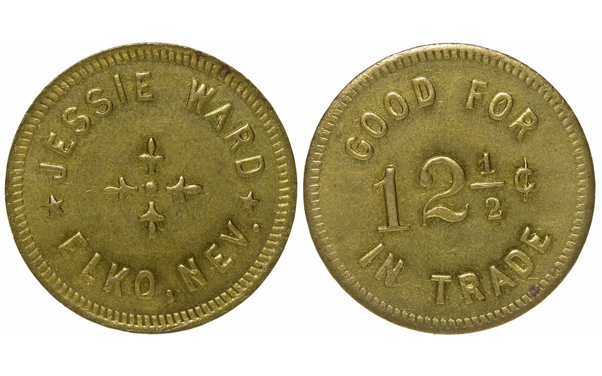 Round, brass, 31mm, Obverse, "Jessie Ward/ Elko, Nev." Reverse, "Good for 12 1/2 cents in Trade." Condition: Unc. - HKA#66205