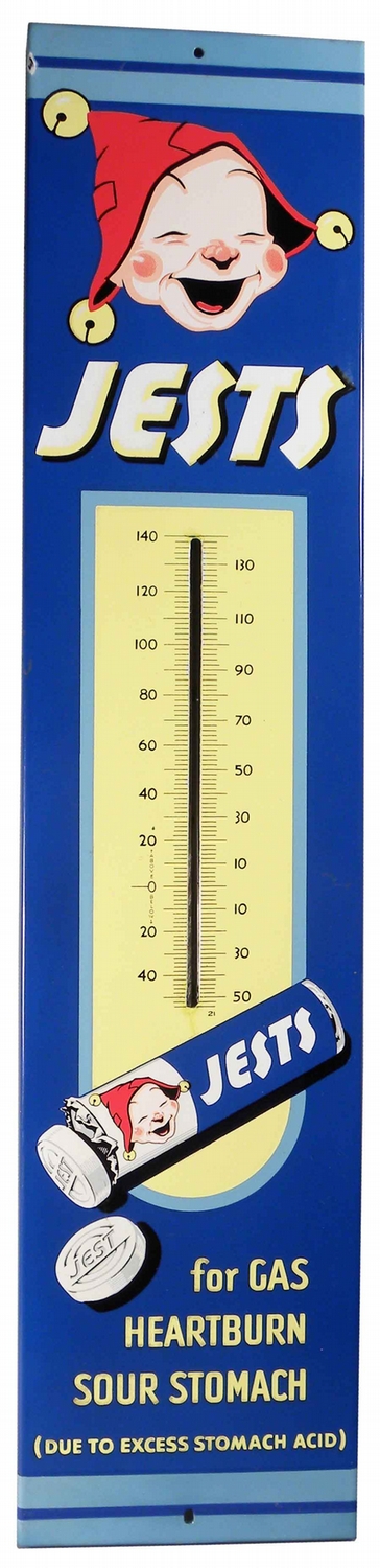 Jests Porcelain Thermometer. For Gas, Heartburn and Sour Stomach. Mint condition. 8 1/4 X 36 inches.