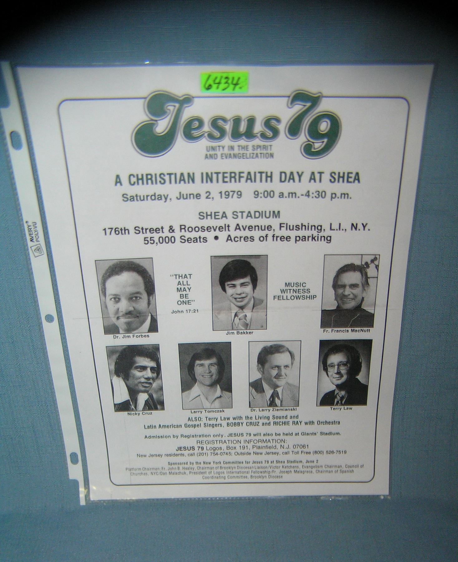 Early reverend Jim Bakker Christian minister for shea stadium 1979 promotional flyer est. value $25.00-$30.00