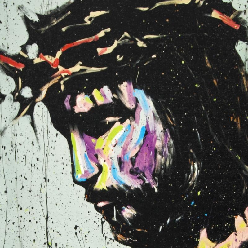 Combining his passions for music and art, David Garibaldi creates stunning visual poetry. "Jesus" is a limited edition giclee on stretched canvas, numbered and bearing the artist's authorized signature. This piece is gallery wrapped and ready to hang. Includes Certificate of Authenticity! Measures approx. 18" x 24" (image). Retail Price $250.00. PRICE INCUDES FREE SHIPPING IN THE U.S. - SHIPPING WILL BE ADDED TO YOUR INVOICE FOR ALL BUYERS OUTSIDE OF THE U.S.