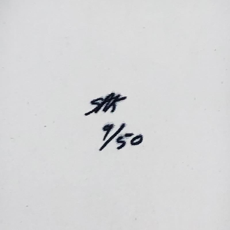"Jesus Peace (State 2)" is limited edition hand pulled silkscreen unique mixed media on canvas by Andy Warhol protege Steve Kaufman (1960-2010). This piece is numbered and hand signed inverso and includes a letter of authenticity. As is common with Kaufman's works, this piece may have perceived minor flaws, but is in overall good condition. Measures approximately 28" x 23" before cropping.