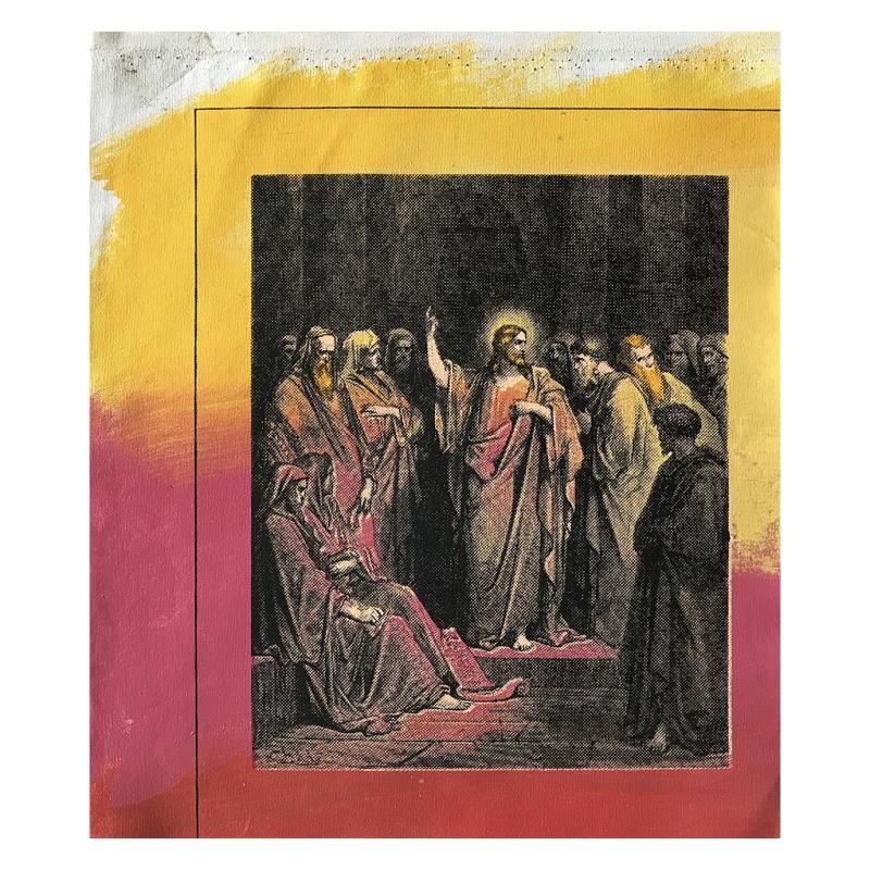 "Jesus in Temple" is a one of a kind, hand painted, silkscreen on canvas by Andy Warhol protege Steve Kaufman (1960-2010). The piece is numbered and hand signed by the artist and accompanied by a Certificate of Authenticity. Measures approx. 11" x 14".