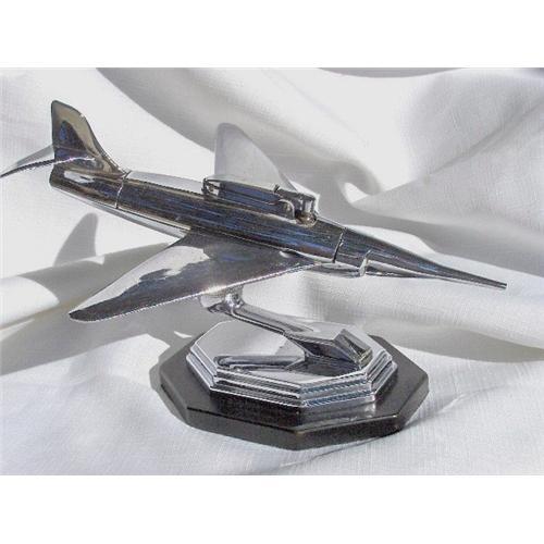 Vintage Jet Airplane Table Lighter, made in Great Britain in 1956. Made of chromium-plated brass and mounted on an articulated arm thats attached to a black bakelite base. The jet is removable from the arm, and the lighter section is also removable. Condition is very good. No rust, no pitting. The bakelite base is in excellent condition, with an oval spot for engraving. This is a rare find in this condition. See photos. A very smart addition to any collection. Take a look at my other items. Thank you for viewing.