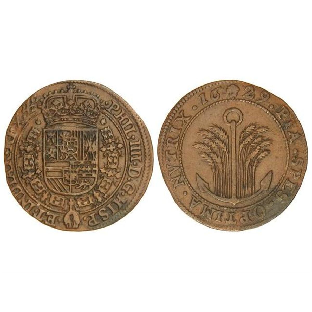 Jetón. - 1629. - BRUSELAS. - Anv.: Escudo de España. Rev.: Ancla encima espigas. AE. Ø28 mm. MBC+. - -