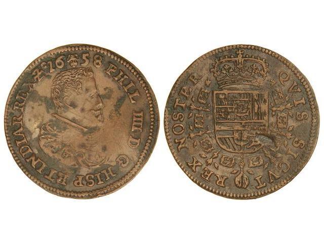 Jetón. 1658. PAÍSES BAJOS. Anv.: Efigie Felipe IV. Rev.: Escudo Felipe IV. MBC+.
