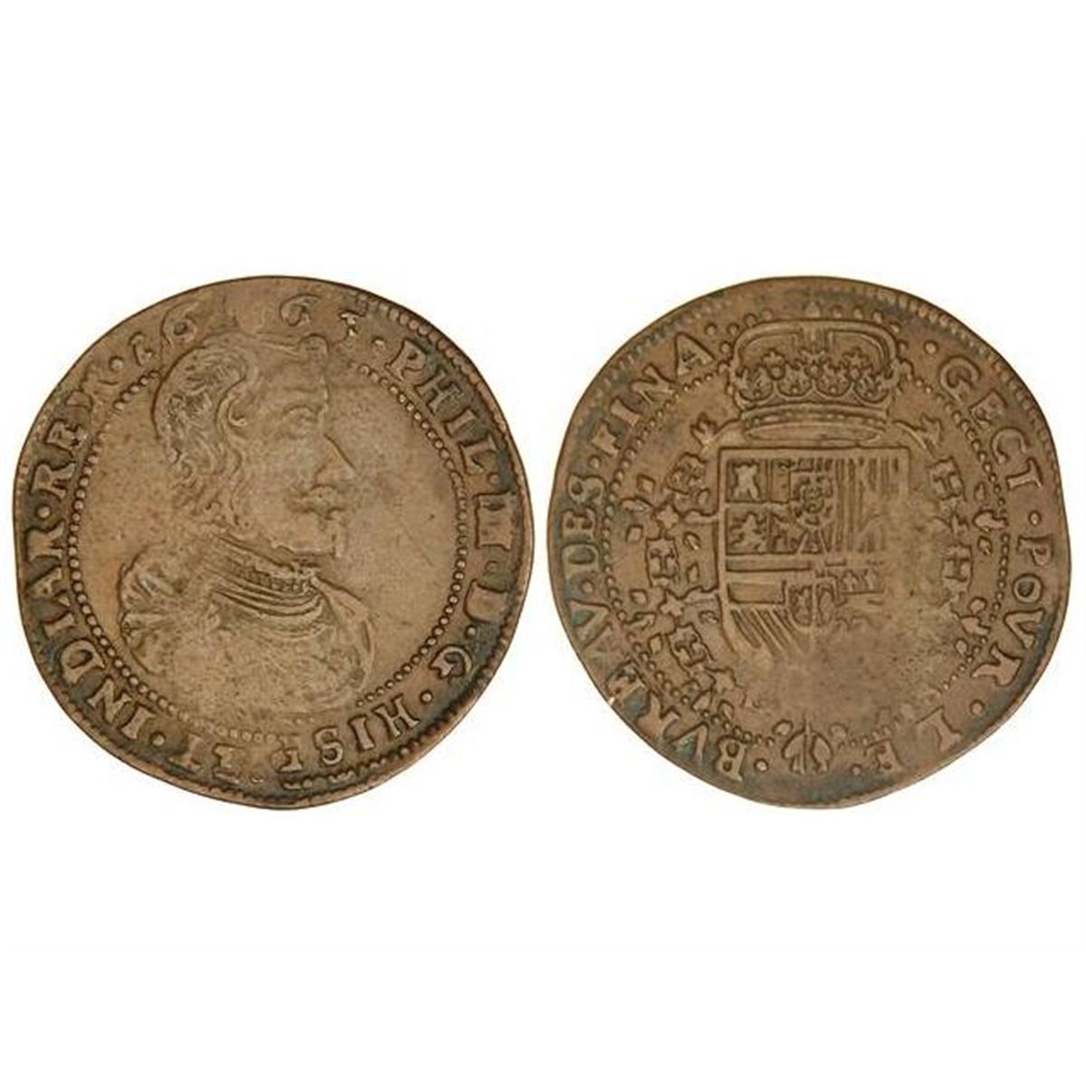 Jetón. - 1665. - BRUSELAS. - Anv.: Busto a derecha. Rev.: Escudo de España. AE. Ø32 mm. MBC. - -