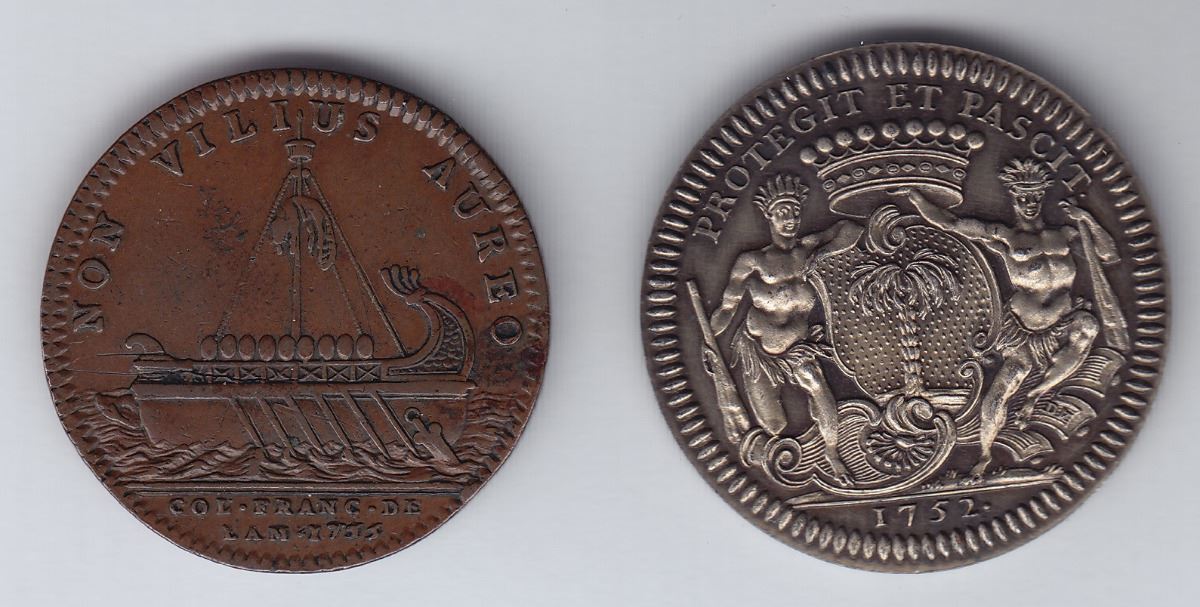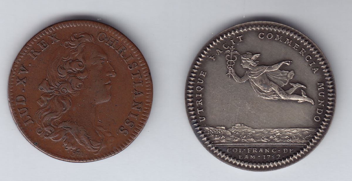 Br 515. Copper, attractive EF; Breton 511, Jeton, restrike in silver, Unc. 2 Pcs.