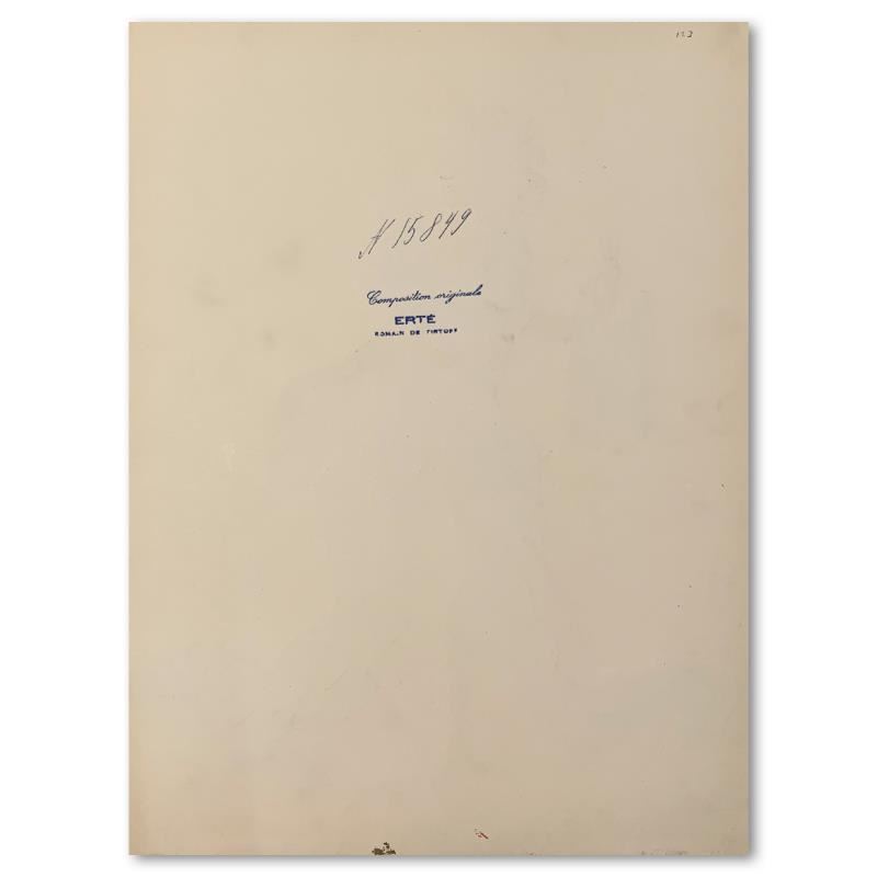 "Jeu d'enfer, mannequin" is an original gauche painting on paper by Erte (1892-1990), hand signed by the artist. This piece bears the stamp, title and registration number 15.849 inverso. Includes Letter of Authenticity. Measures approx. 10.5" x 14.5".
