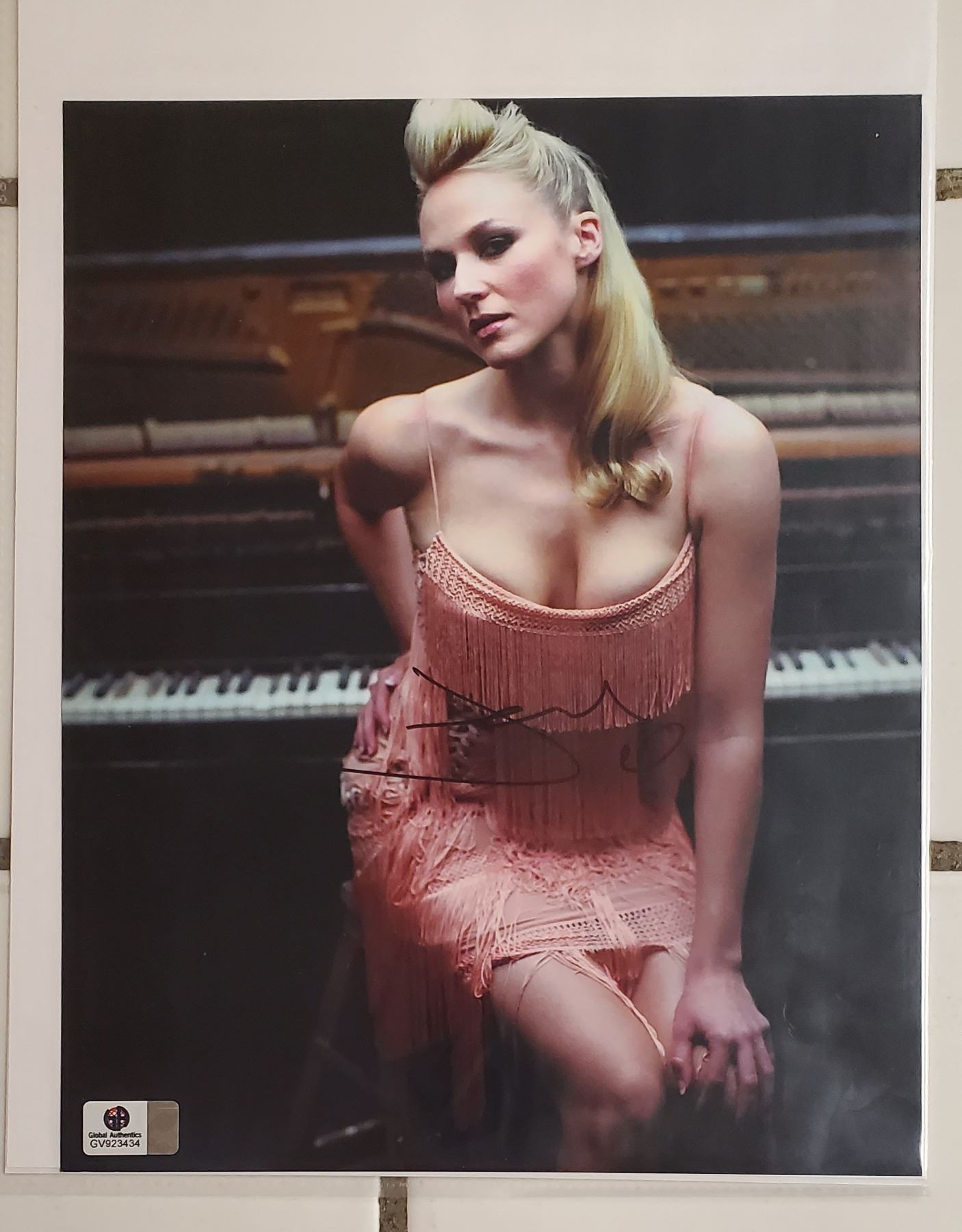 An 8” x 10” photograph signed by Jewel. Global Authentics authenticated the autograph, providing a Certificate of Authentication numbered GV 923434.