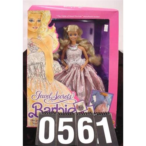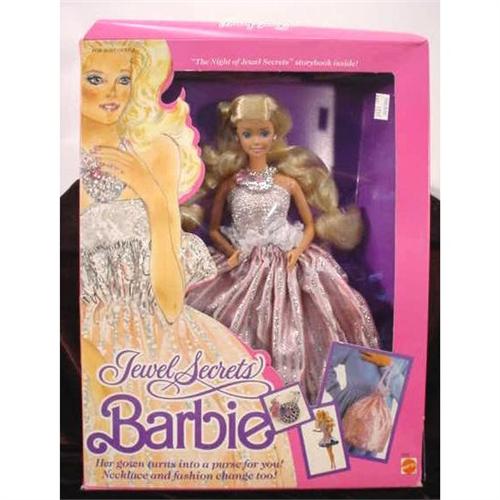 By Mattel, Jewel Secrets Barbie. Made 1986. Doll is in mint condition and comes with all accessories. Box measures 13" x 10" x 3" and weighs 14 ounces. [81]