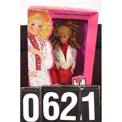 Jewel Secrets Skipper Barbie Doll from Mattel, doll in perfect condition, made 1986. Includes storybook. Box measures 11" x 6.5" x 2" and weighs 10 ounces. [81]