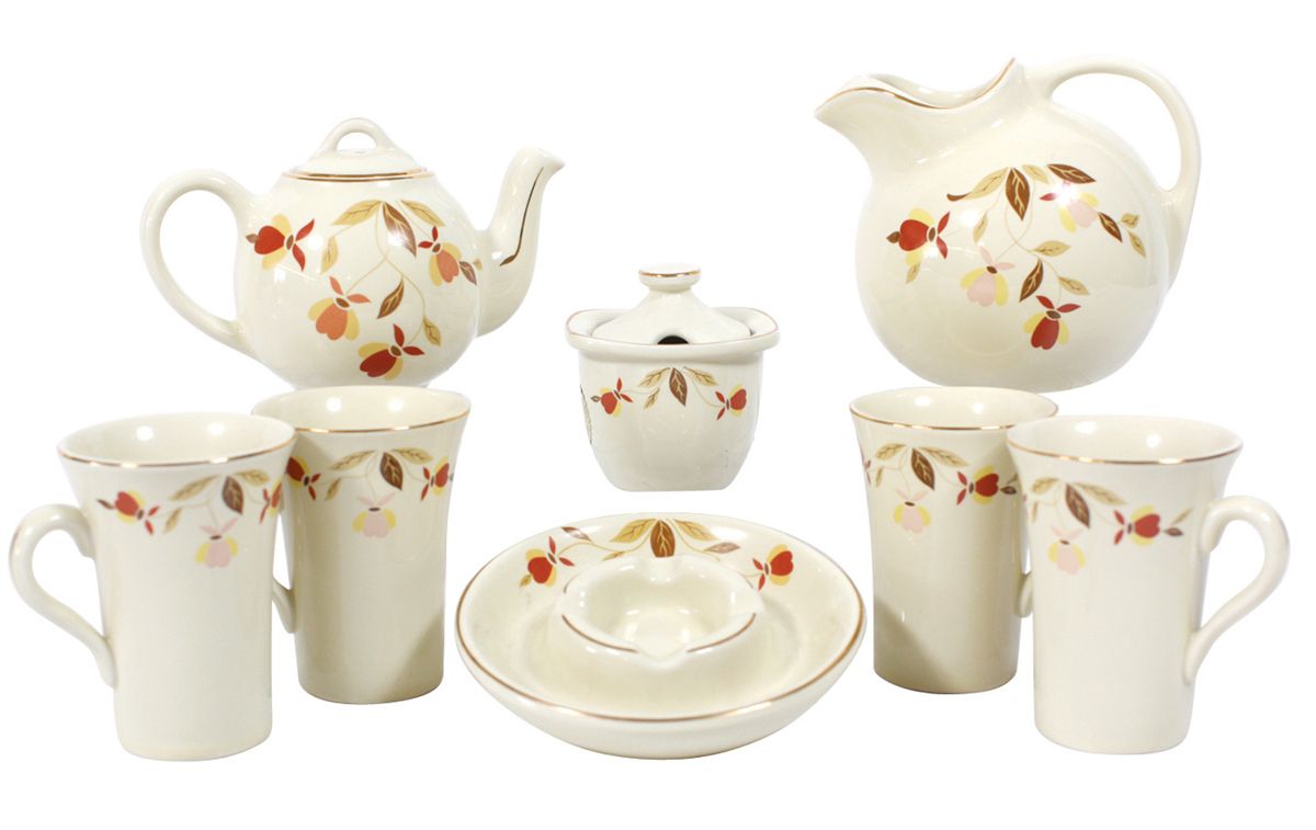 Jewel Tea Autumn Leaf (8), 1992 French tea pot NALCC Gift, baby ball pitcher, set of 4 chocolate mug