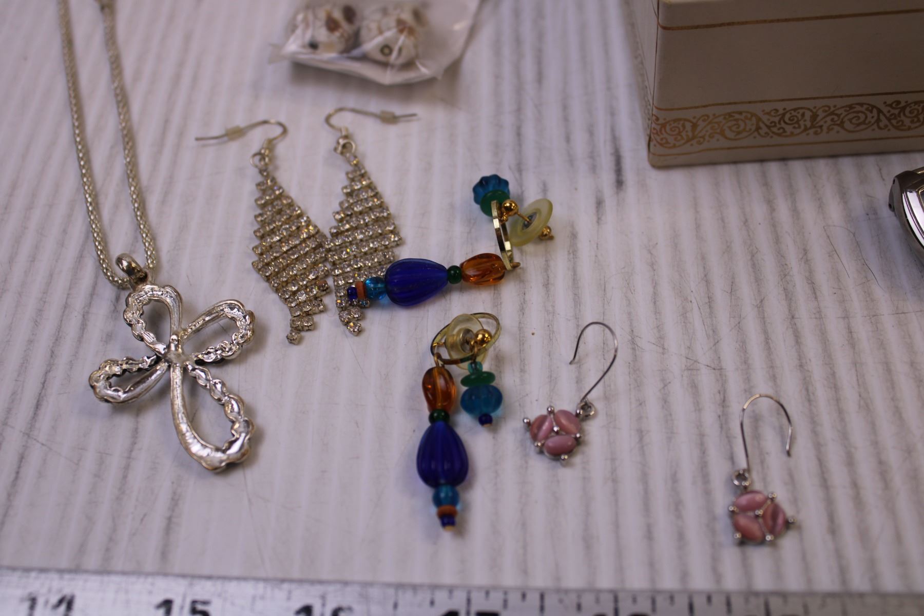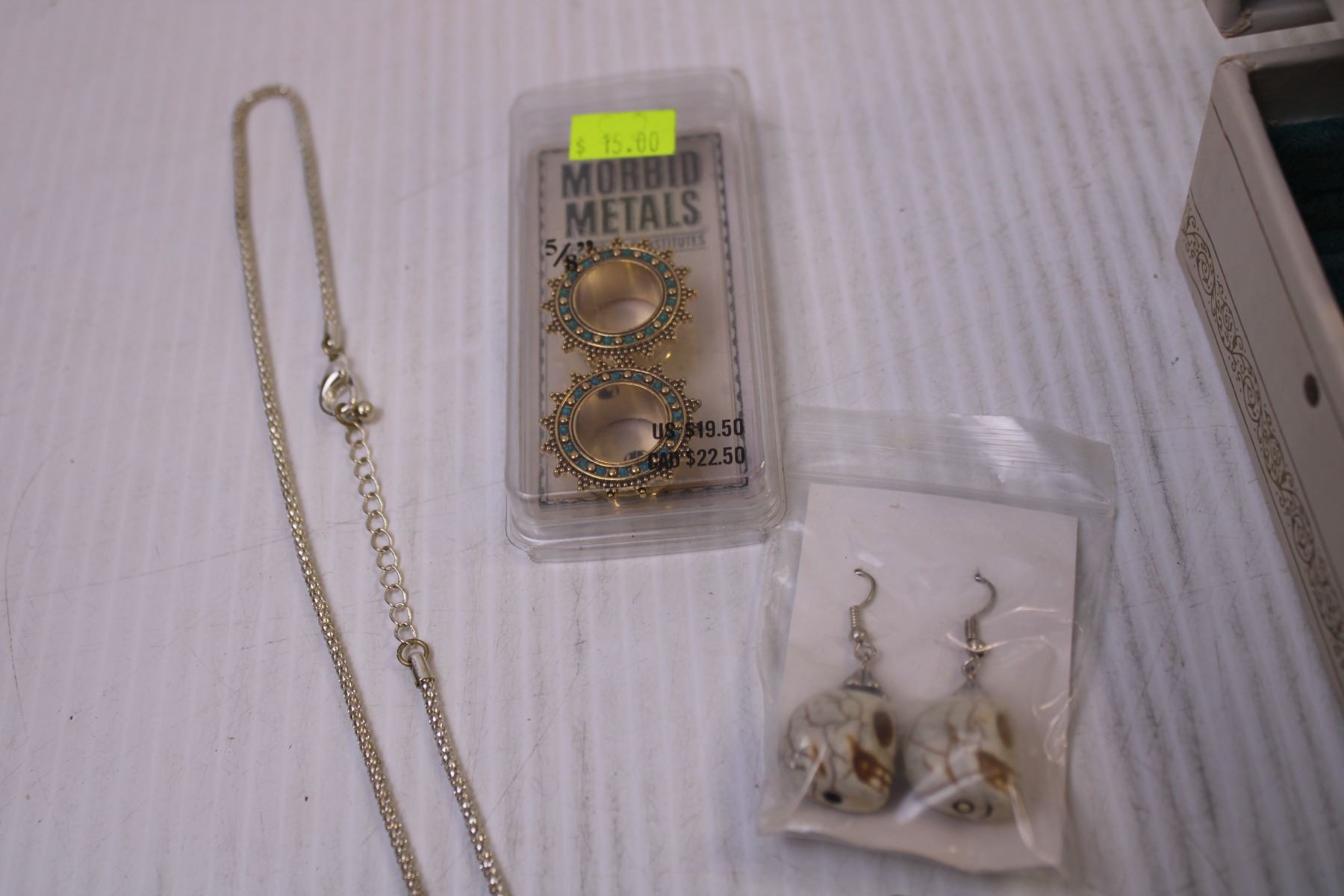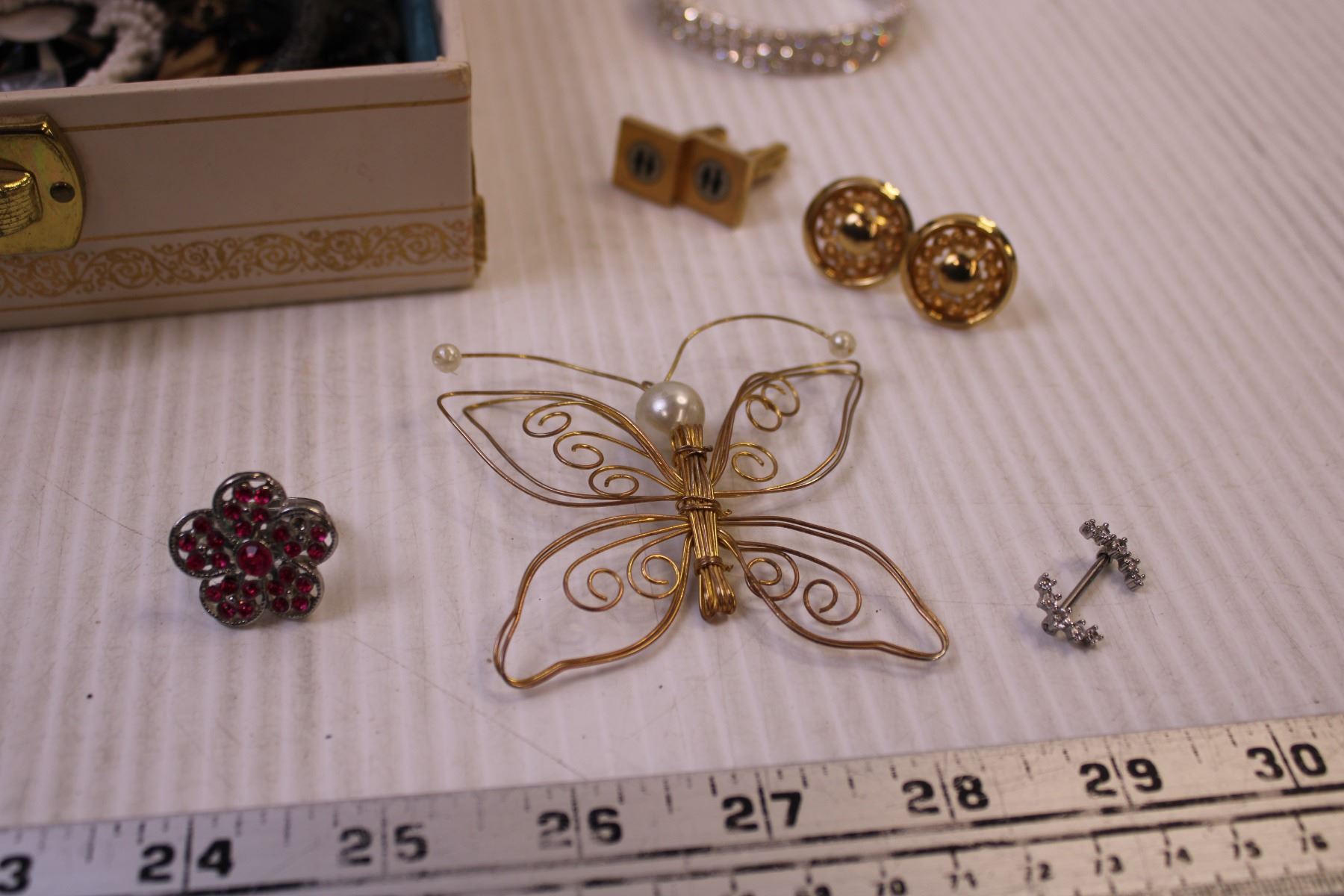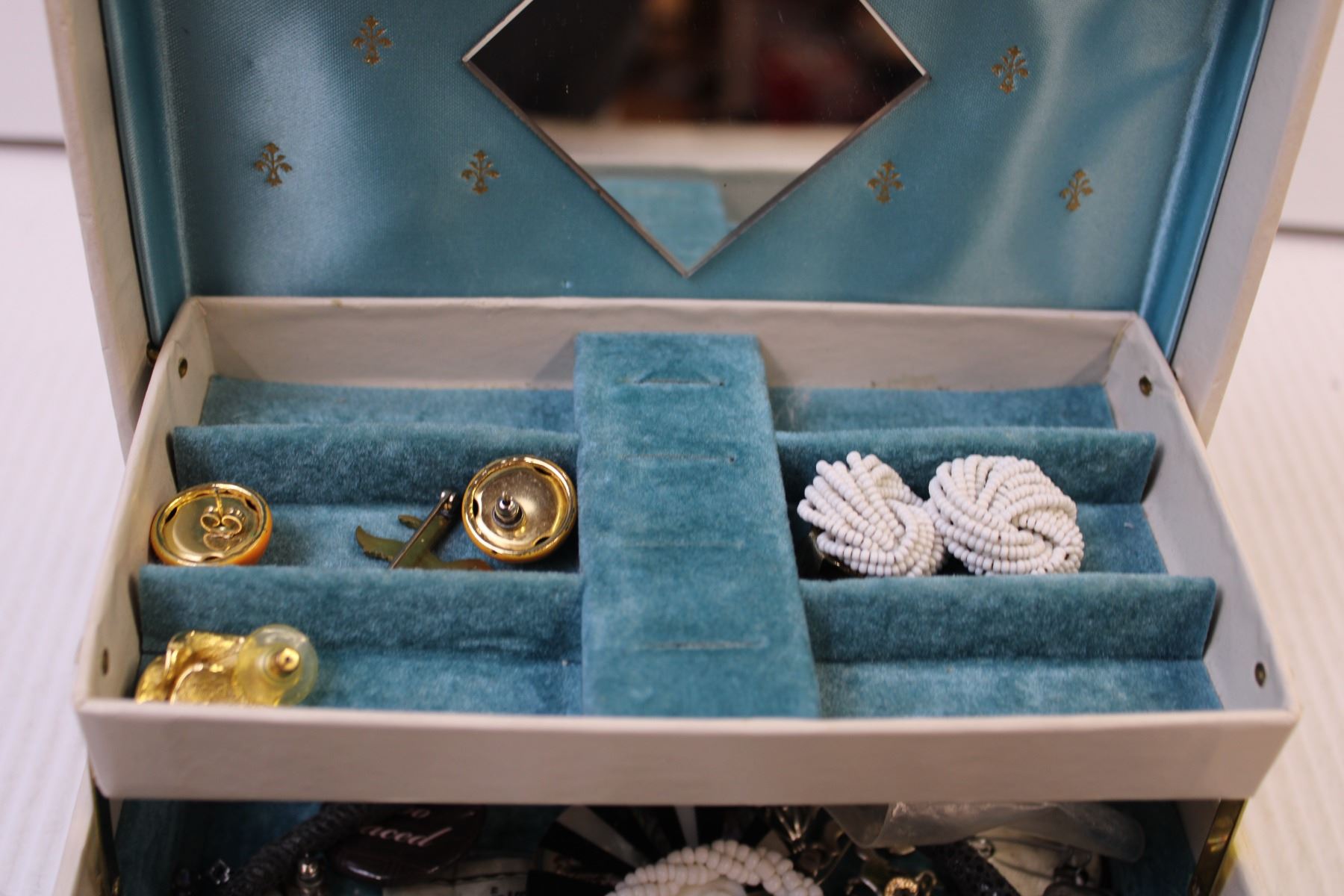 Jewellery Box w/ Mix of Costume Jewellery, Cufflinks, Gauge Earrings, and a Casio Watch