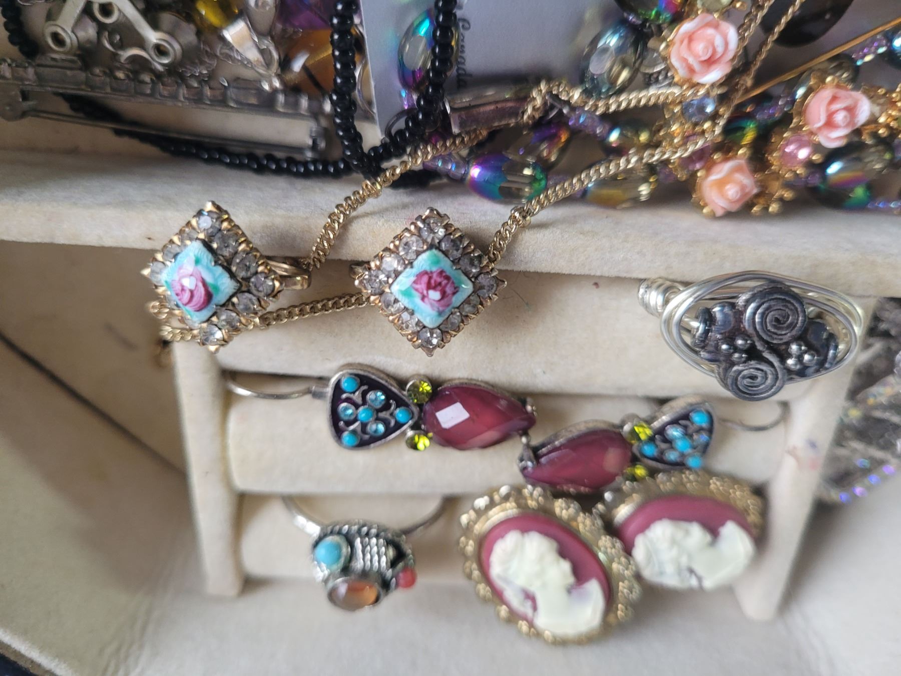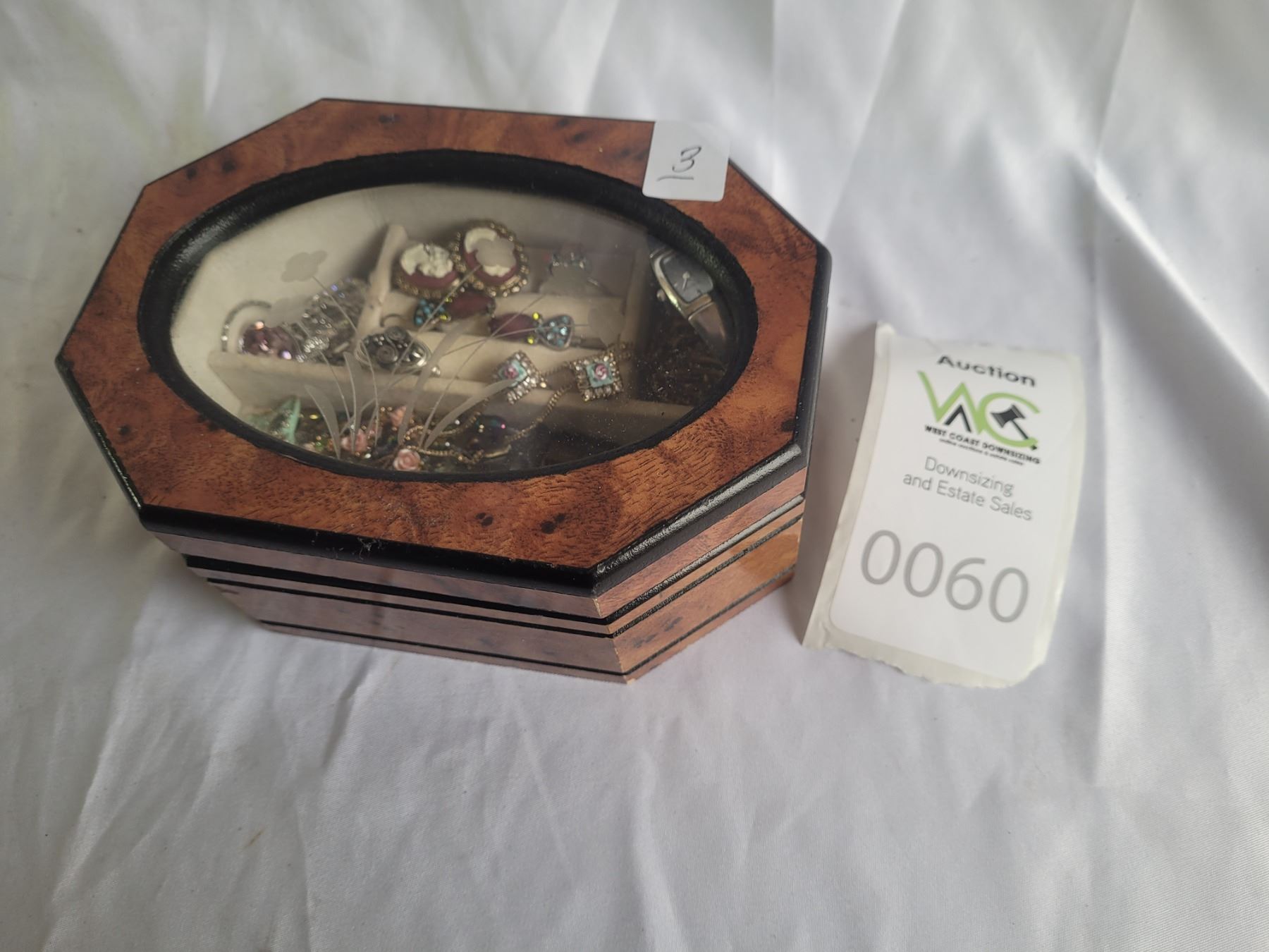 Oval jewelry box with vintage jewelry. Pickup at 9 am