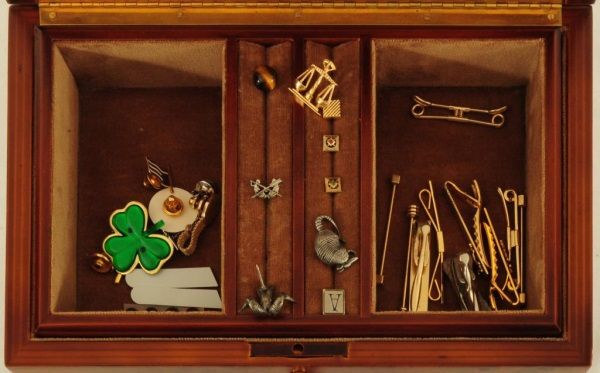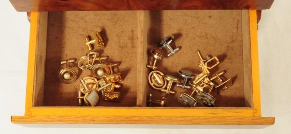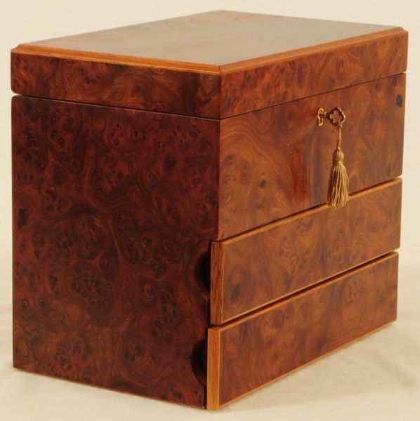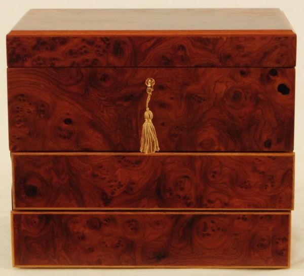 Wood Jewelry Box with assorted jewelry 10.5" x 7" x 9"