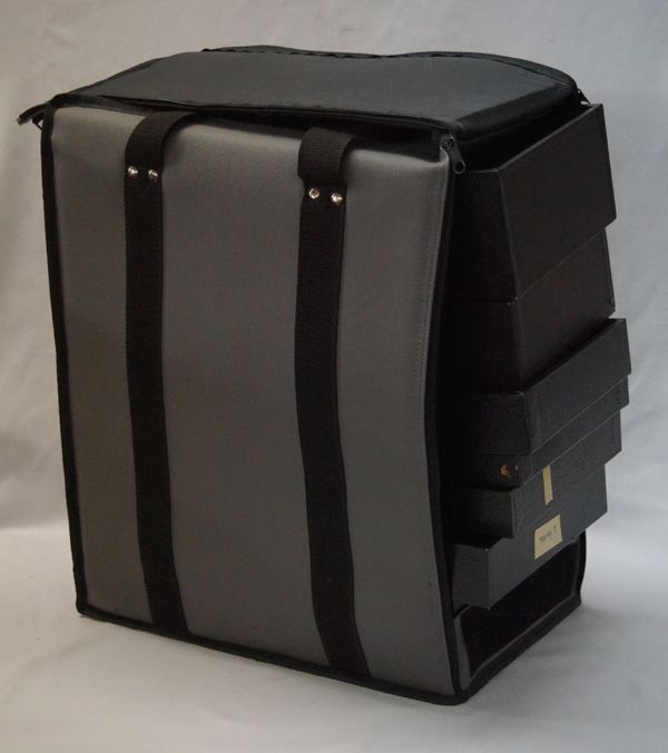 Jewelry Carrying Case, comes with 8 jewelry display boxes measures 18.5'' x 8.75'' x 16'', handle has been taped shut from two handles to one, zippered closure