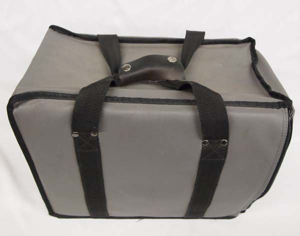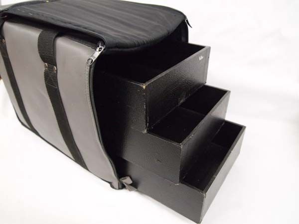 Jewelry Carrying Case. This Padded and handled case has 3 deep drawers for jewelry. It measures approx. 16'' x 12'' x 9'' and has 2 tears in the material on the side.