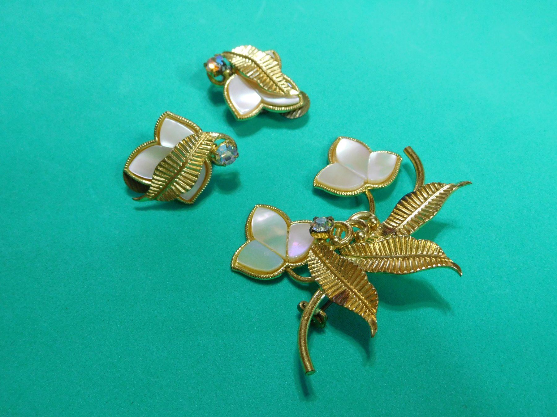 Jewelry Estate - Lot of Mother of Pearl - Brooch and Clip Earrings