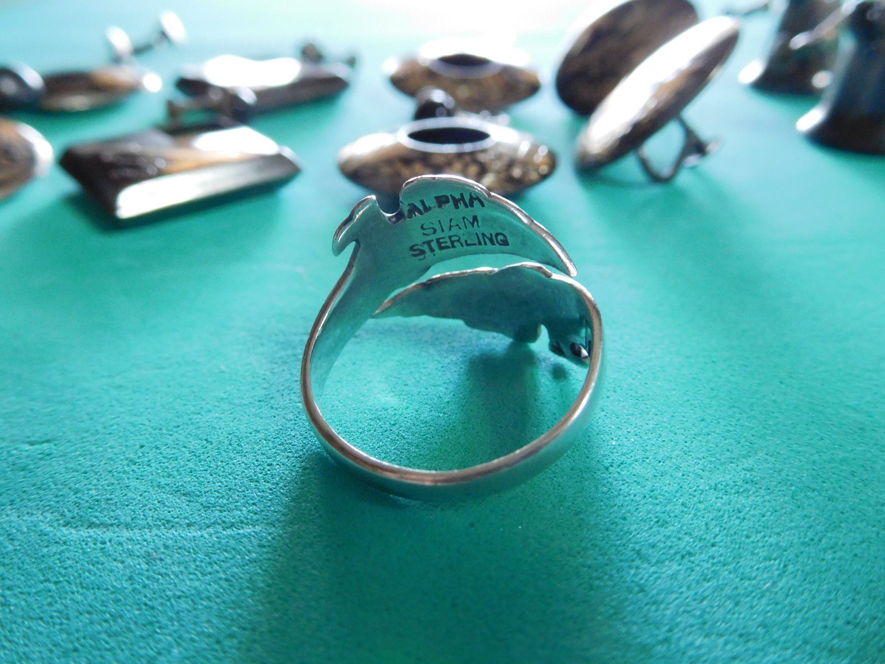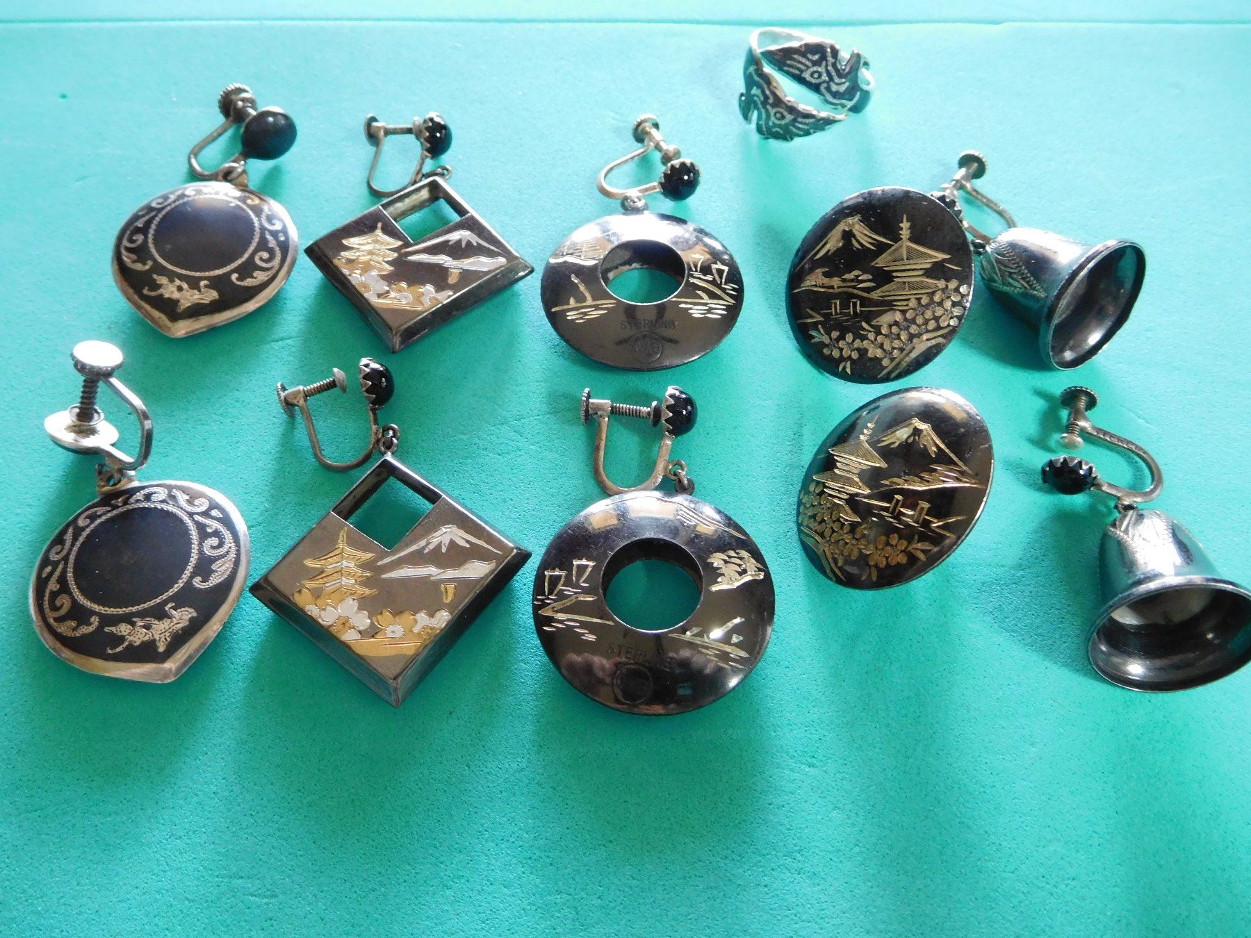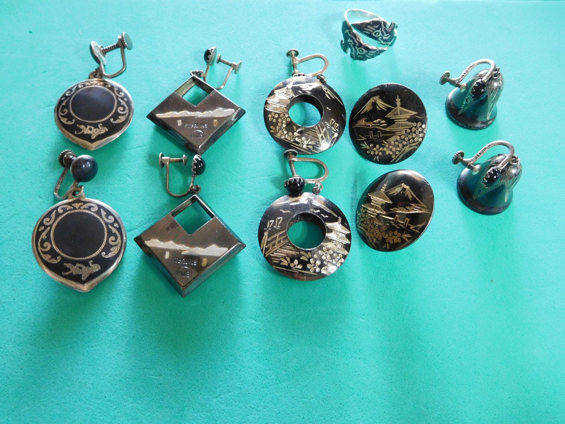 Jewelry Estate - SIAM Lot of Jewery - Five Pairs of Screw Back Earrings including buttons, dangles, squares and bells and 1 Sz 6 3/4 ALPHA Siam Silver Ring