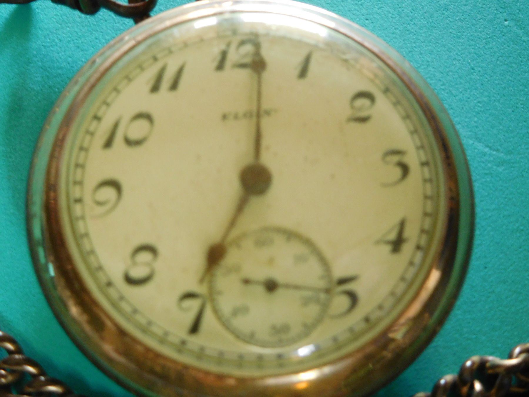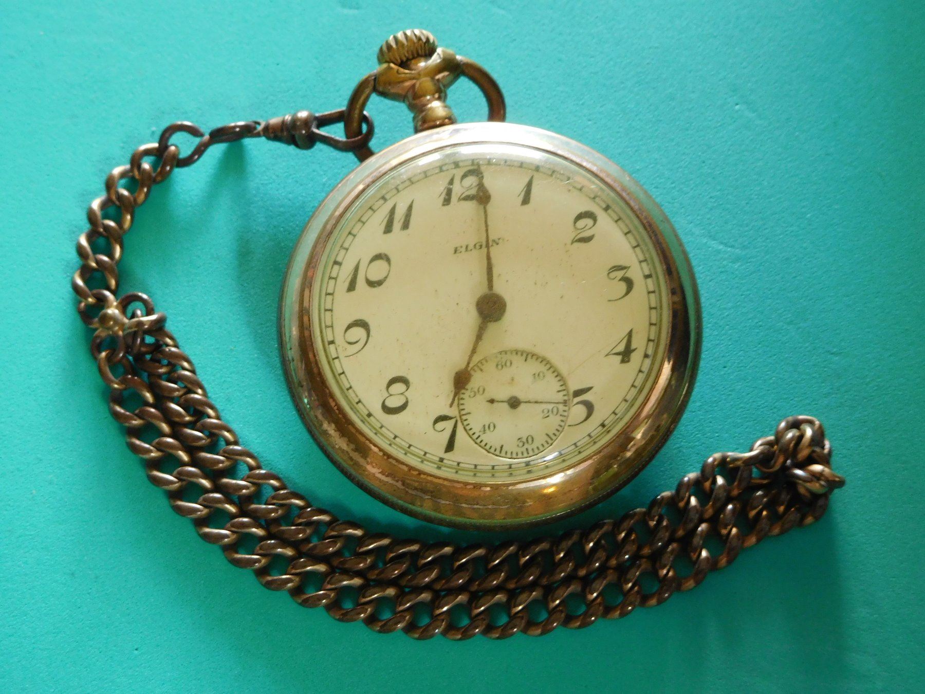 Jewelry Estate - Vintage Pocket Watch - ELGIN Goldton Case with Chain - Ticking, Stop Watch Hands Moving