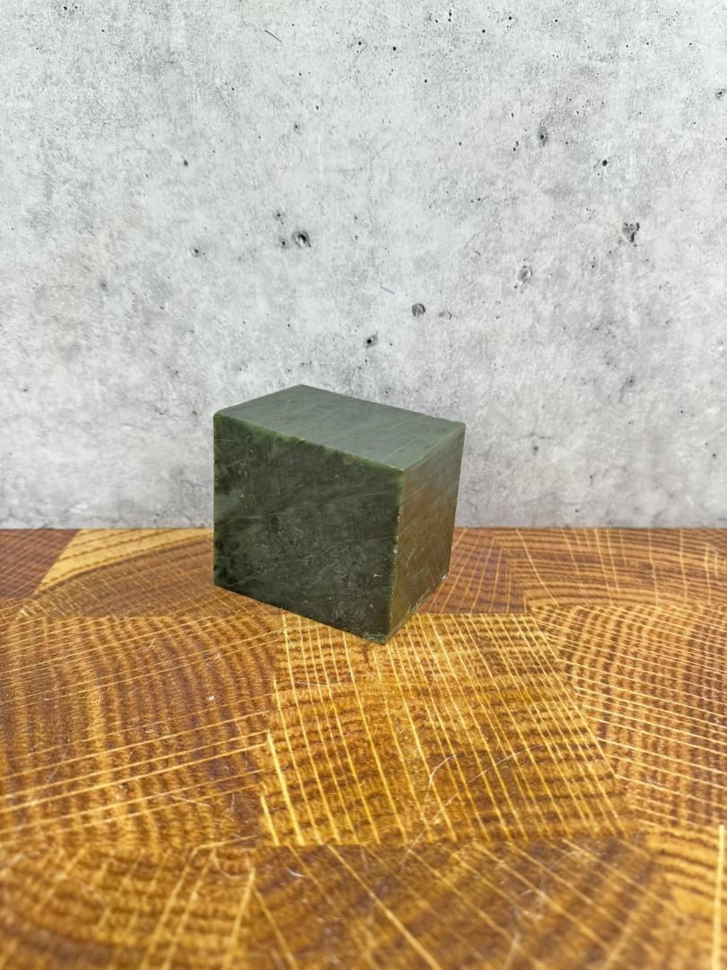 3" by 2 3/4" by 2 1/4". 810 grams.