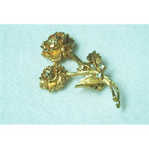 I am featuring at todays auction a very pretty, matte, gold finished, Rose Floral Brooch. The center of each rose displays a bezel set glass dentelle. The two Matte gold finished stems also displays 3 smaller, bezel set, glass rhinestones.