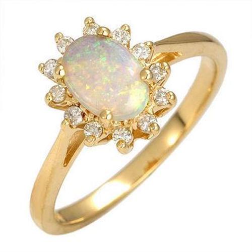 <h1>Jewelry Opal & 0.15 ctw Diamond Ring 14K Yellow Gold</h1>