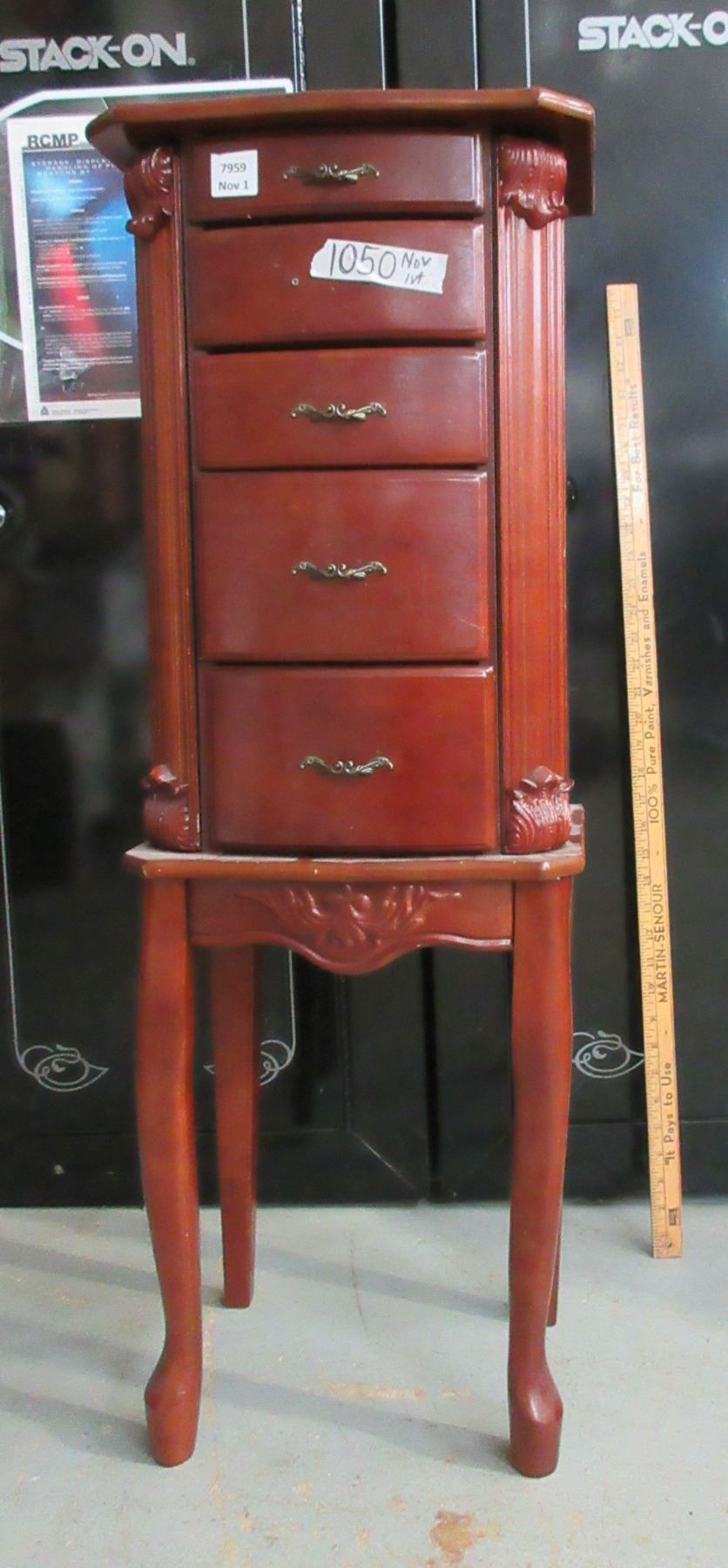 Jewelry Stand 4 Drawers lid + mirror 36"Tall