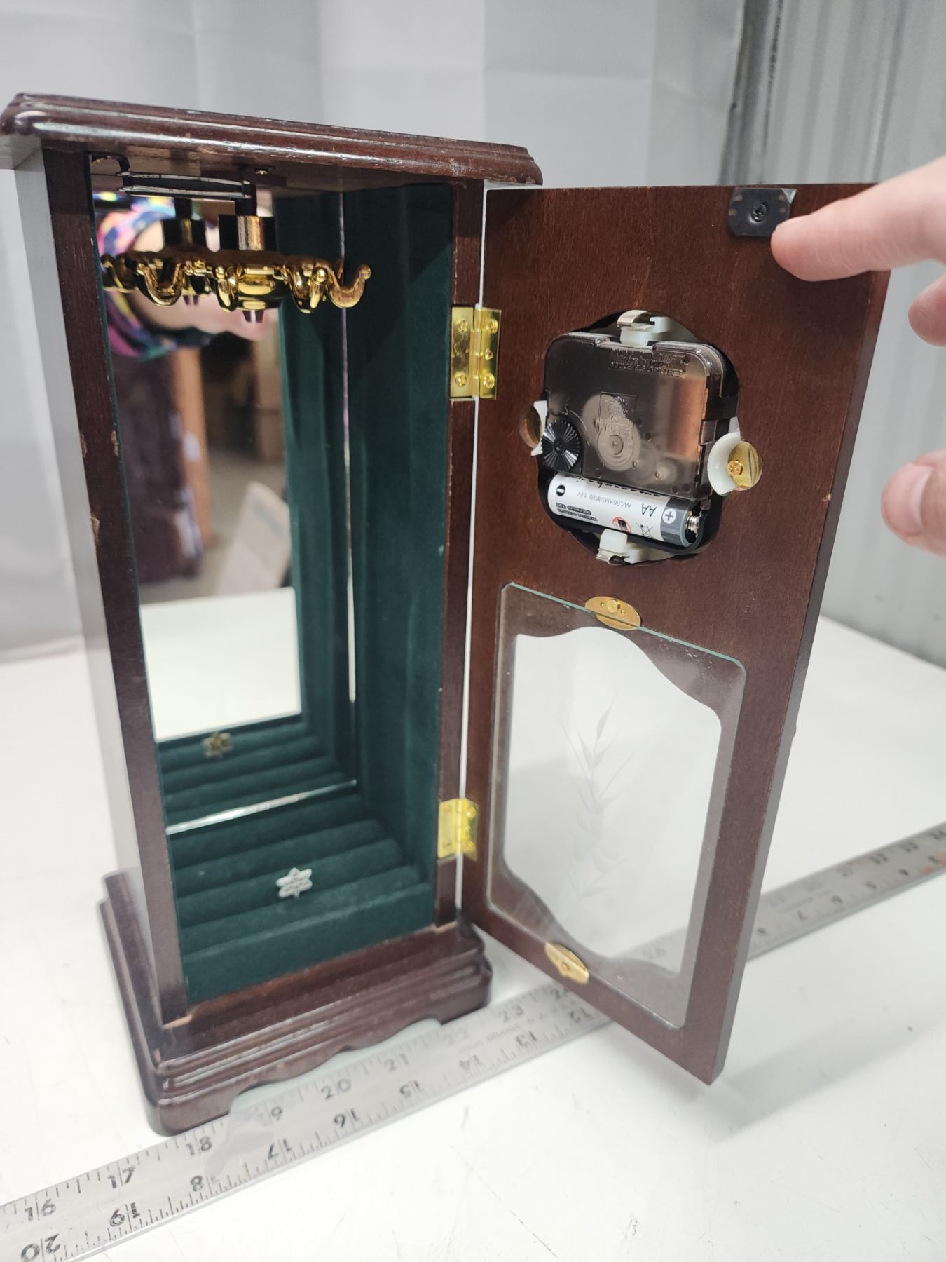 Jewelry box, w/ clock - works - 12.5"H x 5.5"w x 5"D