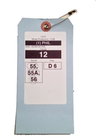 Phil (Adam Devine) screen worn, hero, black hooded "John Varvatos" 1 front pocket sweater (M), olive green "American Apparel" crew neck t-shirt (L), denim 4 hole button fly "All Saints" slim leg 5 pocket jeans (36), grey suede "Gianvito Rossi" low top sneakers with 6 hole lace up and grey soles (42.5). worn in scene 12. Wardrobe tag included.