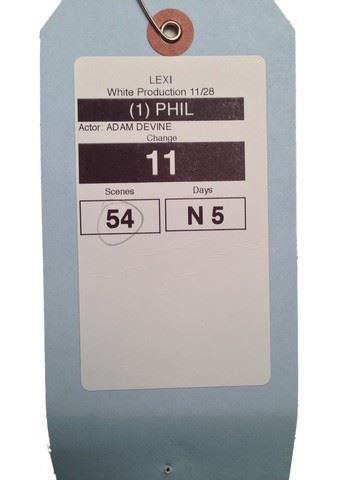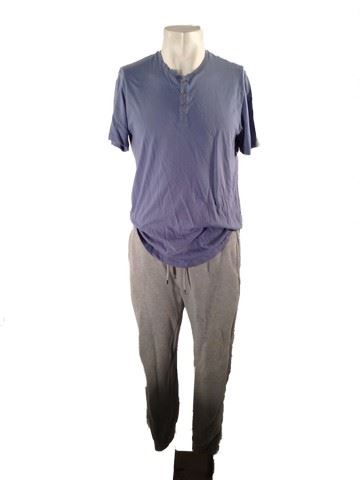 Phil (Adam Devine) screen worn, hero, blue "Velvet" henley crew neck (m), grey "Topman" sweat pants with elastic and drawstring waist and 3 pockets (m). Worn in scene 11. Wardrobe tag included.