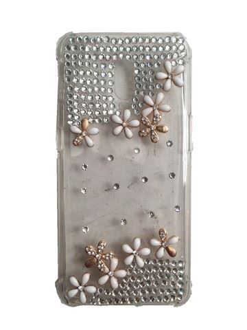 Screen used, hero, "Jexi" clear phone case that has been bedazzled with jewels and flowers, used in scene 99 when Phil (Adam Devine) tries a bunch of cases out on Jexi.(7x3)