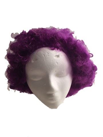 Screen worn, stunt, afro wig bright purple with a floral headpiece.(14x12)
